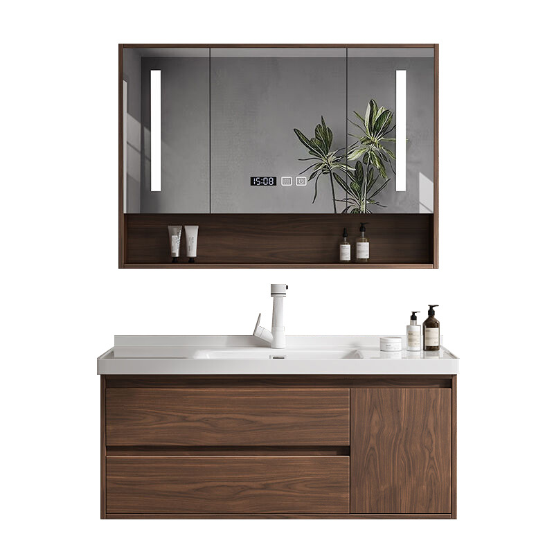 北欧胡桃色浴室柜组合卫生间洗手池洗脸盆实木日式洗漱台盆原木风