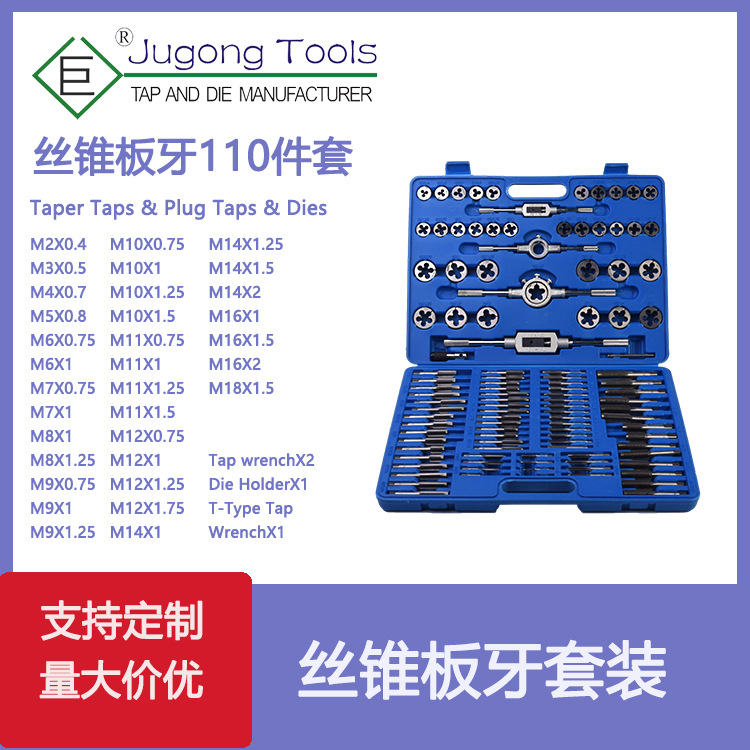 厂家 110件套丝锥板牙套装110PC公制丝攻组套 吹塑盒