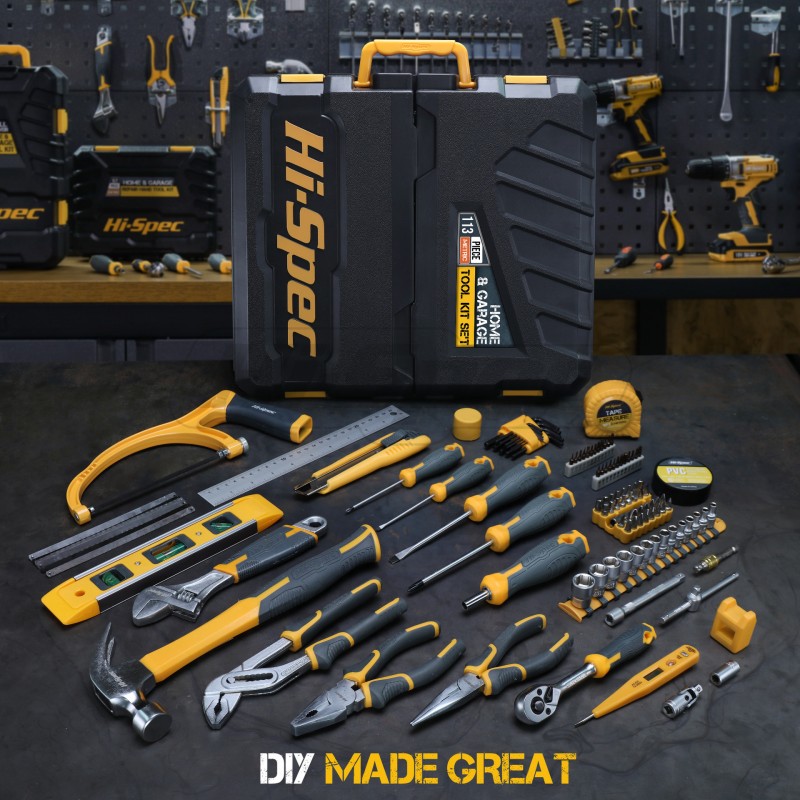 Hi-Spec 113件家用机修组合套装工具箱钳子羊角锤螺丝刀维修套装