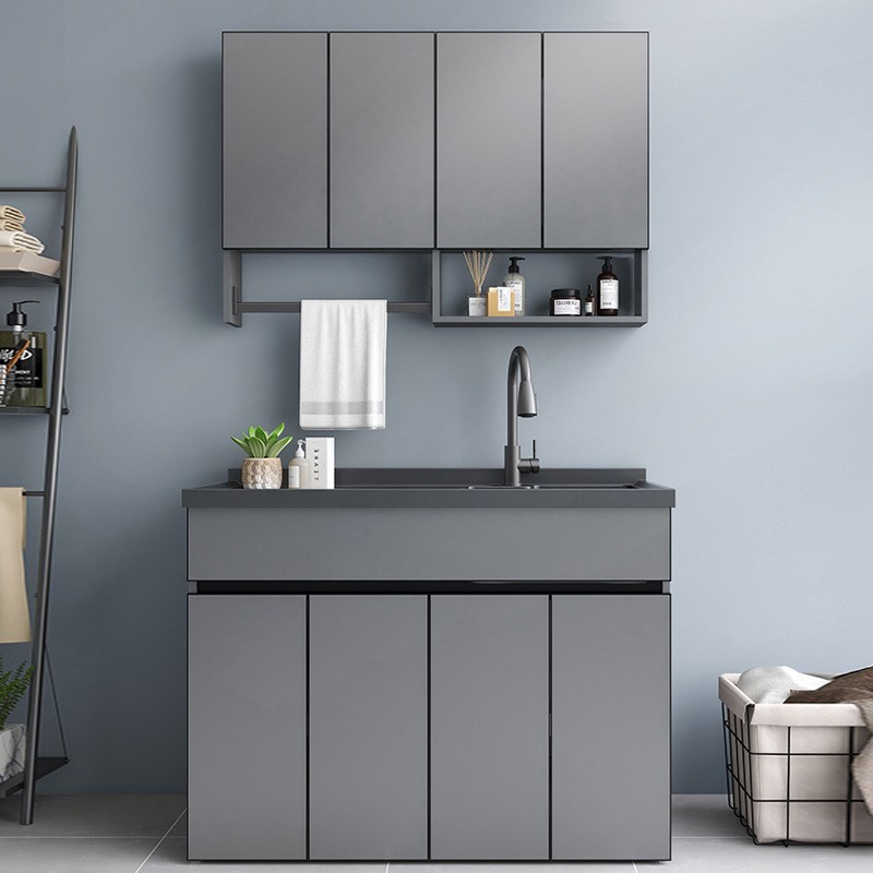 阳台洗衣柜 太空铝洗衣台收纳阳台柜组合卫生间一体盆切角洗衣池