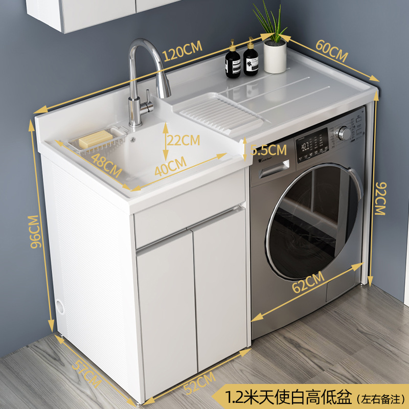 阳台柜洗衣机柜组合一体石英石带搓板滚筒太空铝洗衣柜洗衣池厂家