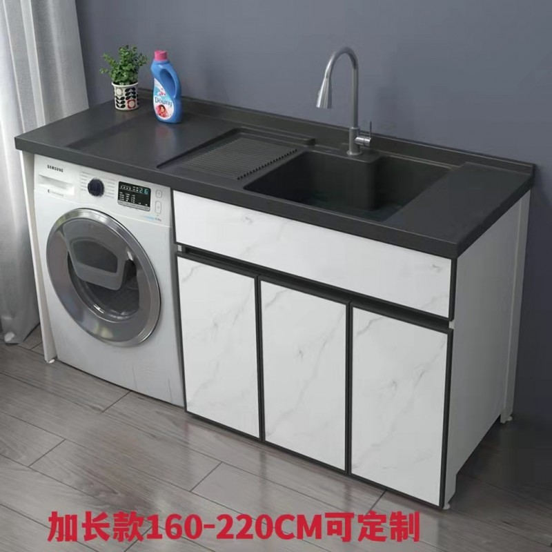 阳台太空铝洗衣柜组合一体盆带搓板洗手盆洗衣机柜洗衣池台厂家