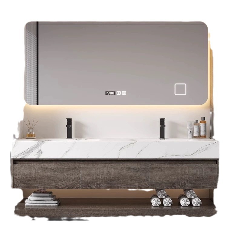 轻奢风岩板热弯一体盆浴室柜组合卫生间洗脸池洗手洗漱台盆柜组合