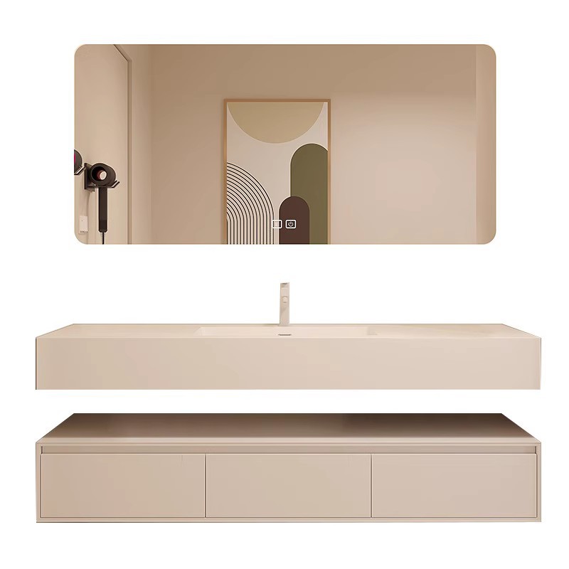 奶油风岩板一体盆浴室柜组合智能轻奢设计师洗手洗脸池简约洗漱台