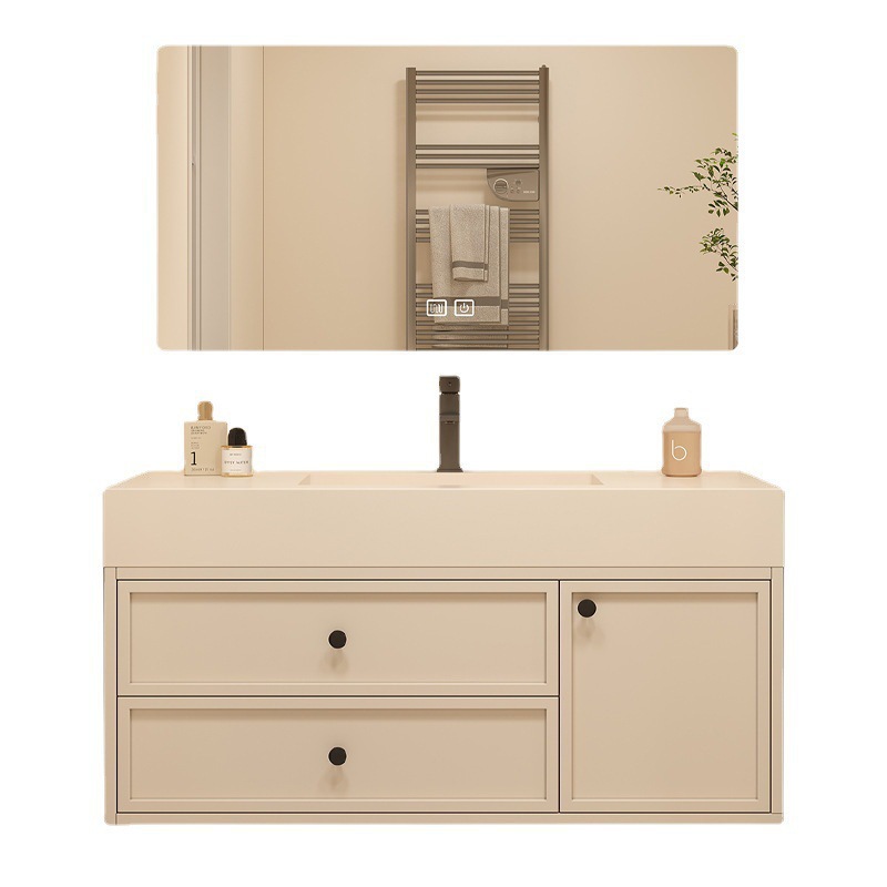 岩板陶瓷无缝一体橡木法式洗手洗脸盆洗漱台奶油风浴室柜厂家直销