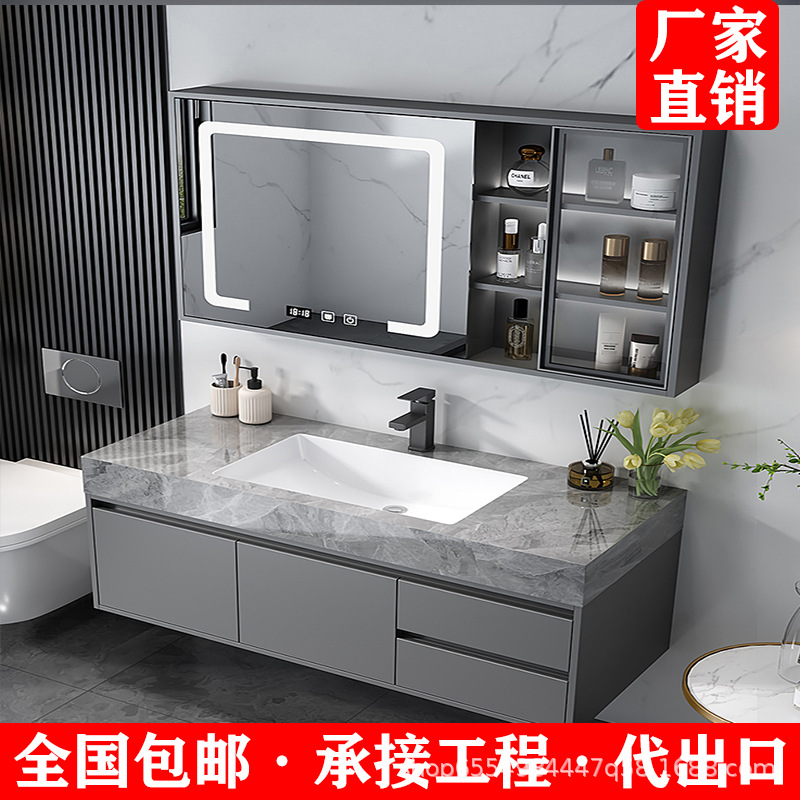 2023现代简约浴室柜岩板无缝盆洗手脸盆柜组合卫生间洗漱台镜柜