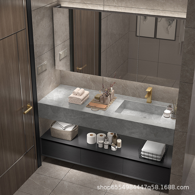 现代简约实木岩板一体盆浴室柜组合卫生间洗漱台洗手台洗脸池双盆
