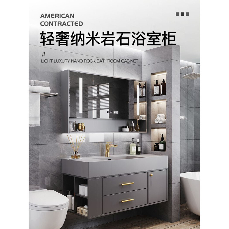 智能镜柜岩板热弯一体无缝陶瓷双盆浴室柜组合可丽耐一体盆洗脸柜