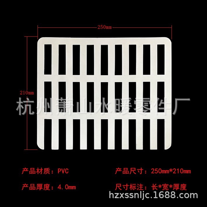 该地漏篦子为长方型,其中一边开放式敞口设计,整体材质为PVC,可用于家装、工装有侧排需要的墙面,以及道理路基面排水等场合。