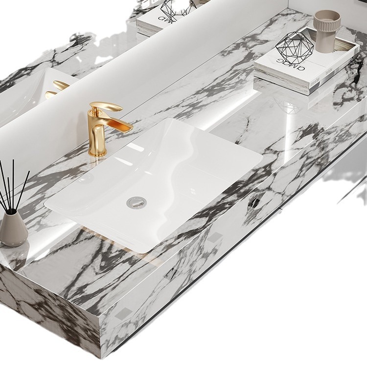 蓝加全桉木宝岩板陶瓷一体浴室柜组合现代简约卫生间洗漱台洗手盆