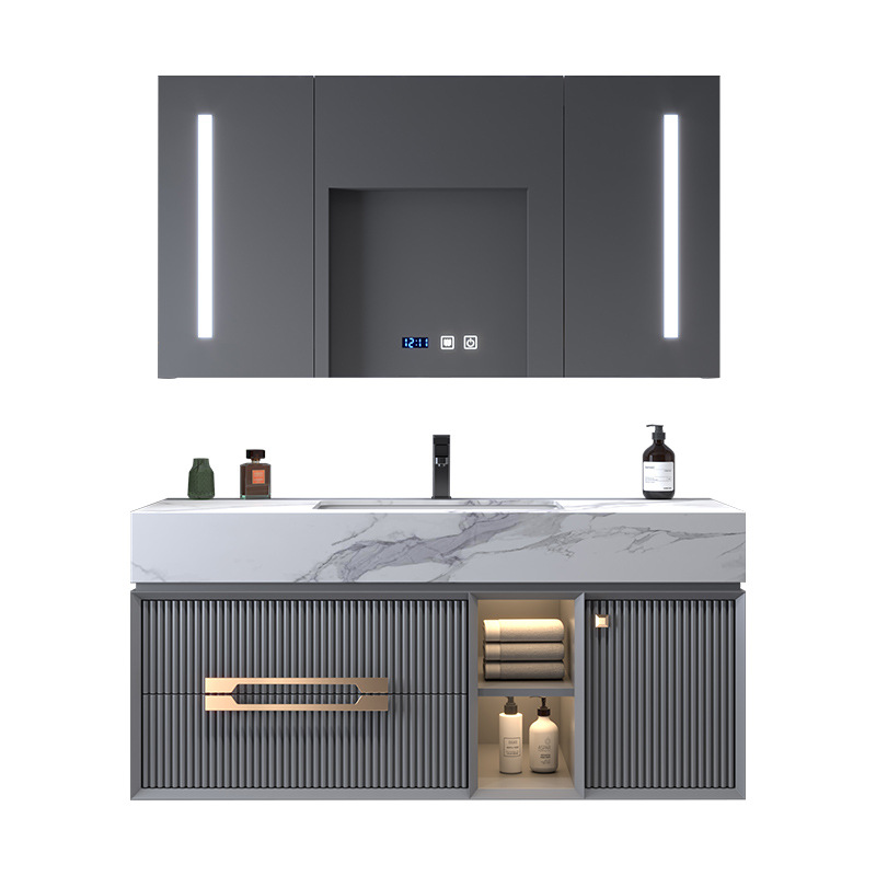 岩板浴室柜组合现代简约轻奢橡木柜卫生间智能洗漱台洗脸池挂墙式
