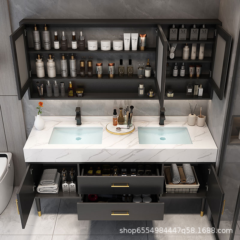 卫浴套装浴室柜组合大理石双盆洗脸台盆柜现代简约岩板无缝陶瓷盆