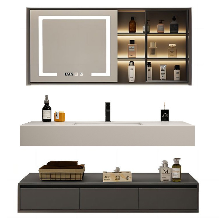 奶油风绮美石肤感一体盆浴室柜组合卫生间洗手盆洗脸池洗漱台套装