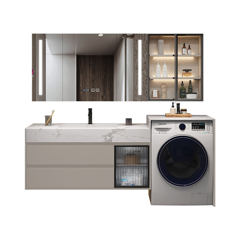 轻奢岩板陶瓷无缝一体盆洗漱台卫生间奶油风浴室柜组合洗手洗脸台