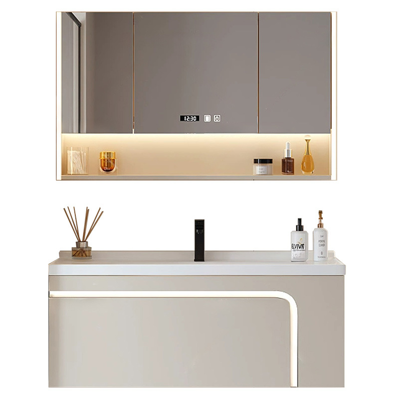 轻奢奶油风陶瓷一体盆浴室柜组合卫生间洗漱台洗手洗脸盆柜浴柜