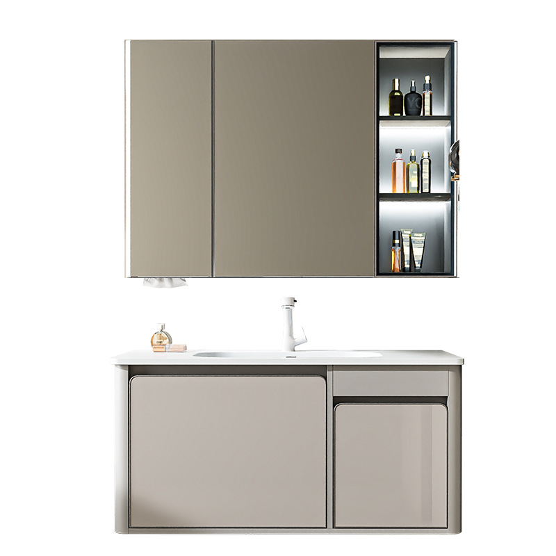 现代简约浴室柜组合绮美石一体盆实木智能洗手池洗脸盆洗漱台套装