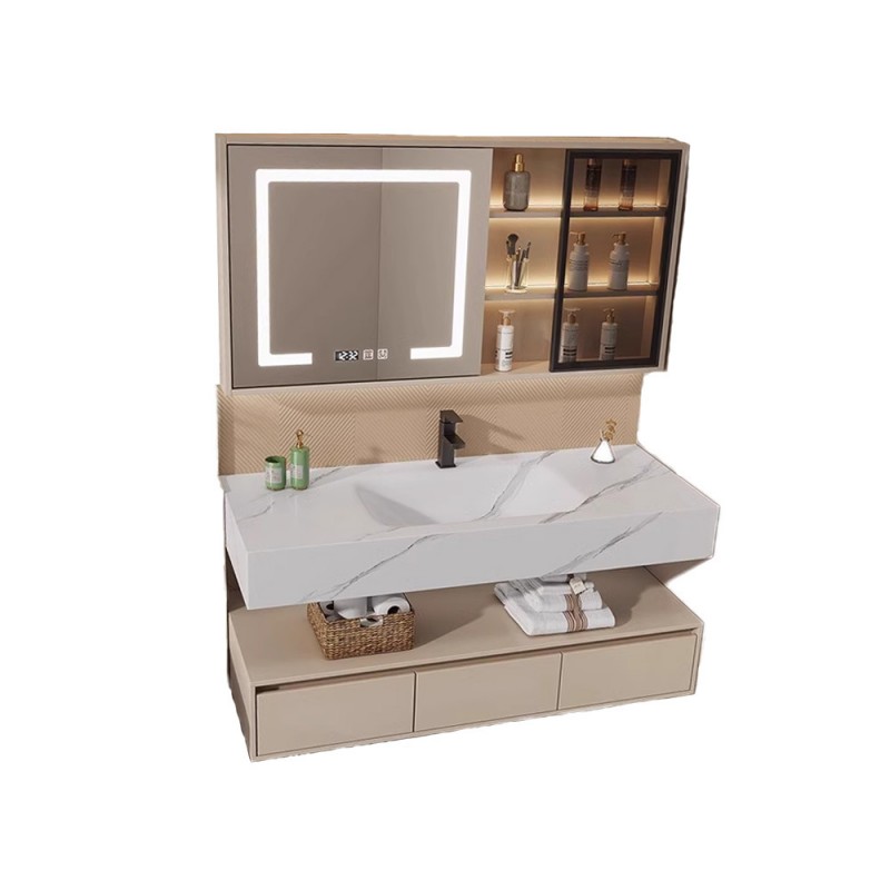 轻奢岩板热弯一体盆洗漱台浴室柜卫生间智能浴室柜组合洗脸洗手盆