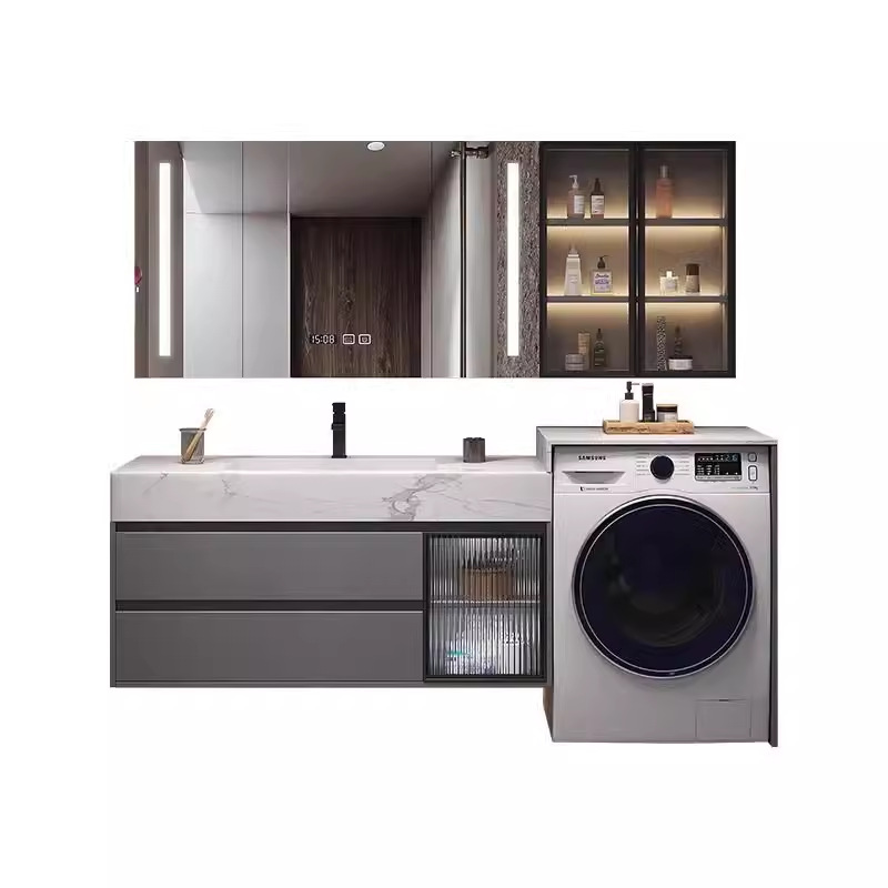 【定制】轻奢洗衣机柜岩板无缝陶瓷一体盆卫生间洗脸洗手盆柜组合