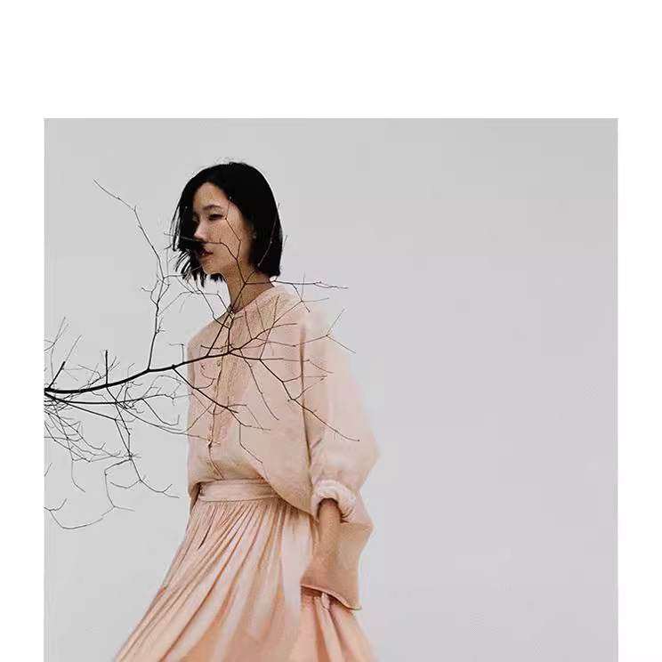 女装苎麻宽松衬衫小众通勤蝙蝠袖衬衣230246 裤子A0321 半裙A0326