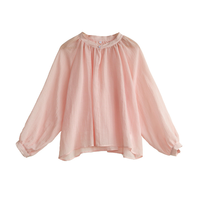 多巴胺春装 皱麻肌理苎麻宽松长袖衬衫女 防晒衫上衣百搭T220610