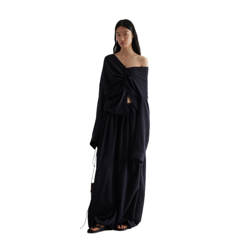 春夏套装黑白经典简约 扭结长袖衬衣B0438阔腿裤山本裤B0447