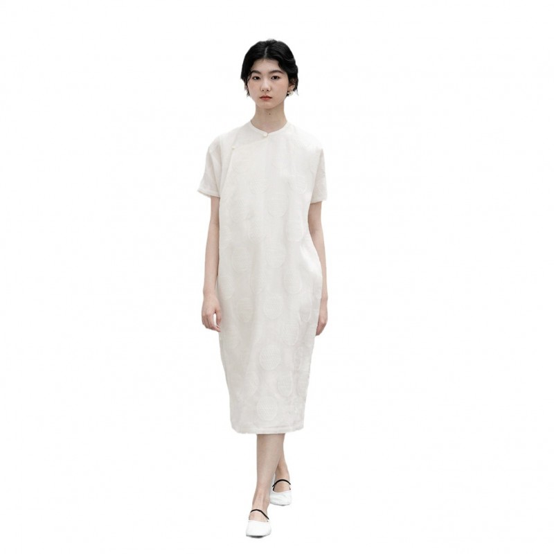 杭州高端连衣裙夏 新中式白色连衣裙女春夏 夏季改良旗袍A0356