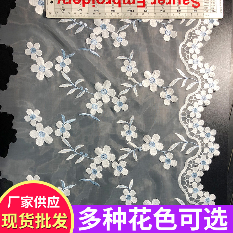 厂家供应水溶蕾丝面料 网纱绣花花边布 棉线网布花边 3D立体绣花