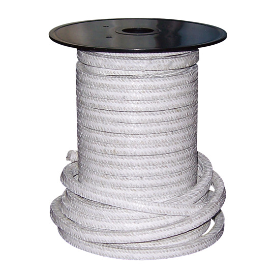 纯四氟盘根由纯聚四氟乙烯纤维编织而成的,不经PTFE乳液及润滑油脂处理。因是由实心编织而具有柔韧可调性,所以与轴,填料箱能很好的配合有耐腐蚀性能,自润滑性和防粘贴性,被建议用于化工、食品、等不允许有污染的操作场合,也可用于除了可溶性碱金属以外的化学介质的场合。根据客户要求可以模压成纯四氟盘根环