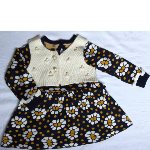2018新款童装 秋冬针织连衣裙花朵假两件女童连衣裙儿童公主裙厂