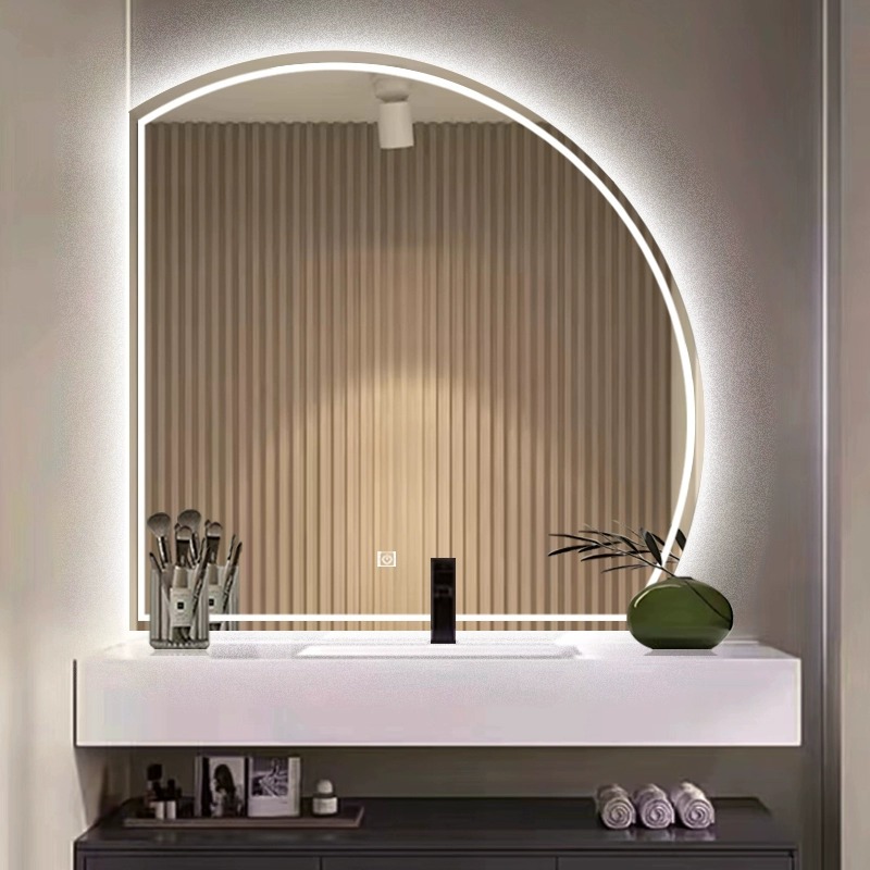 智能半圆浴室镜壁挂卫生间镜子带灯厕所洗手台梳妆镜LED化妆镜子
