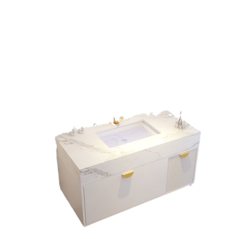时尚实木隐藏镜柜岩板浴室柜组合卫生间洗漱盆洗漱盆卫浴柜供应