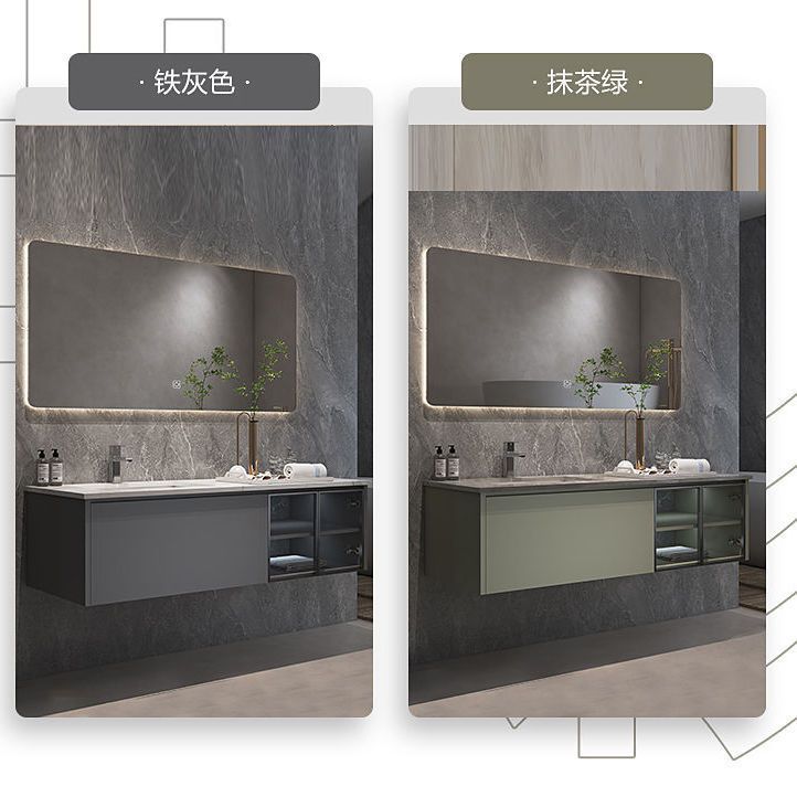 新款亮光岩板陶瓷一体盆浴室柜 卫生间洗漱品洗脸池浴室柜组合
