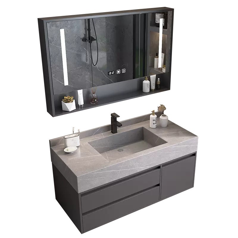 轻奢风岩板一体盆浴室柜智能镜柜洗脸盆柜组合卫生间洗手洗漱台盆