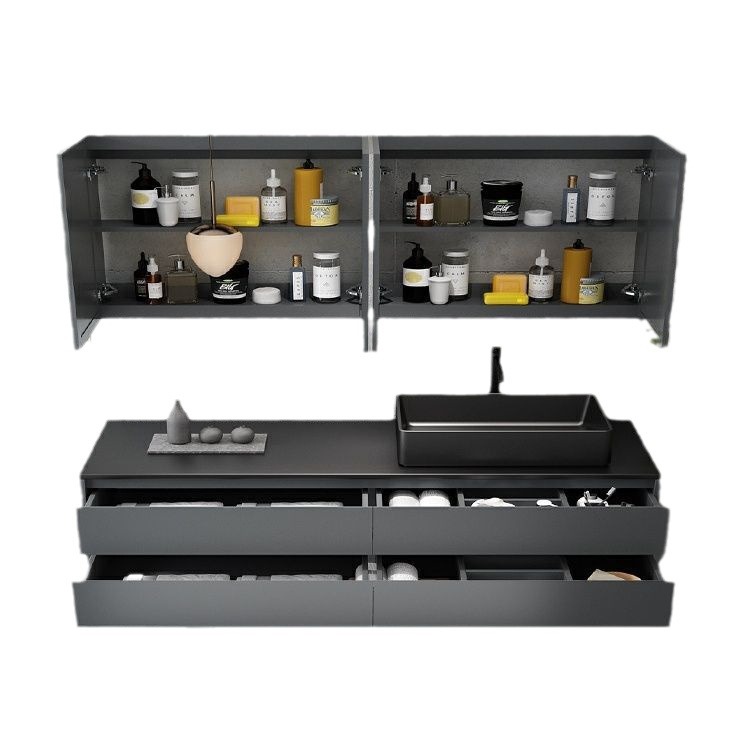 简约台上盆实木一体智能浴室柜组合酒店宾馆洗手盆悬挂洗脸盆组合