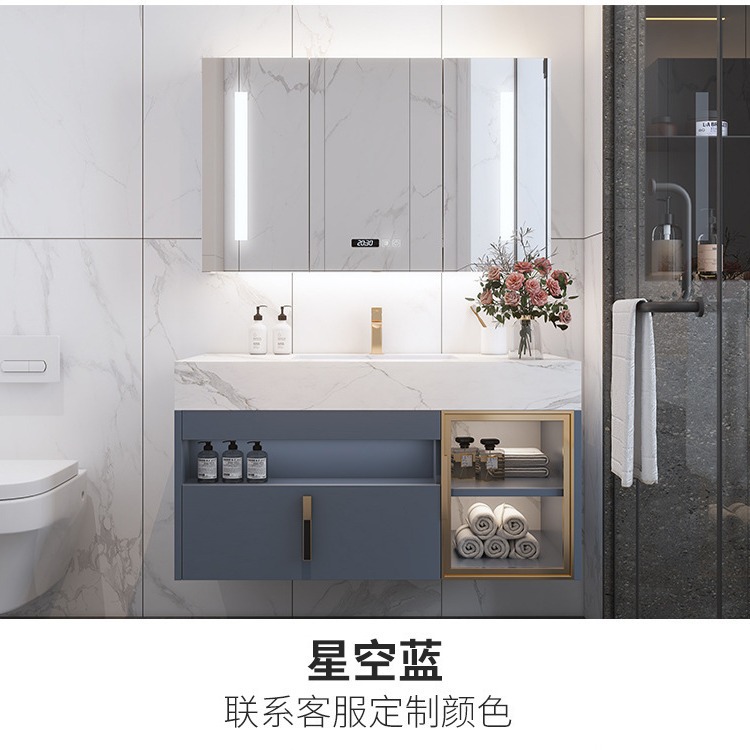 简约实木收纳智能浴室柜组合收纳免漆实木卫生间洗漱台洗手台