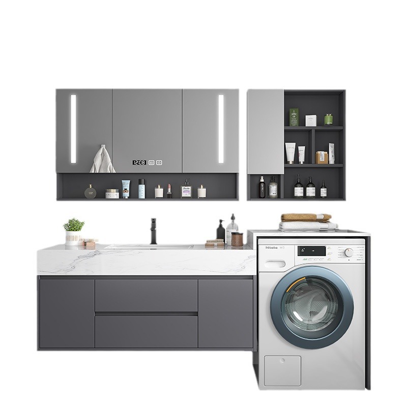 定制简约轻奢洗衣机一体柜洗手池卫浴智能岩板浴室柜组合洗脸面盆