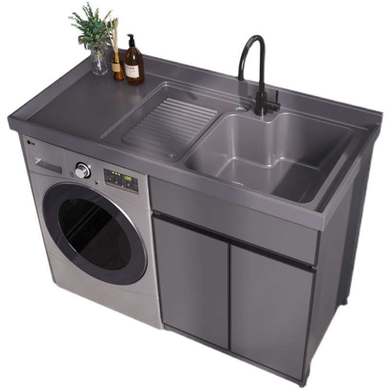 现代简约阳台太空铝洗衣柜 防潮防溅岩盆一体切角洗衣洗手储物柜