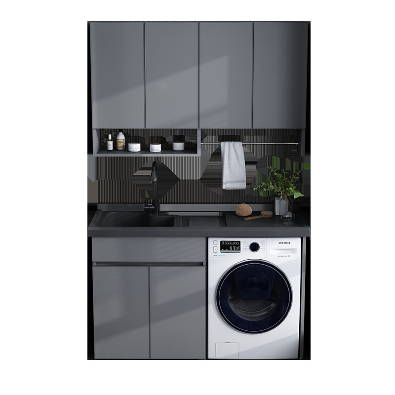 北欧简约太空铝洗衣柜 多规格阳台岩板洗衣盆一体洗衣台储物柜