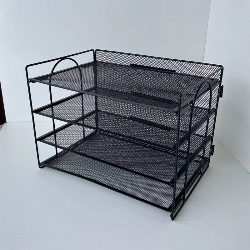 跨境办公用品四层五层可带笔筒文件架办公收纳金属网状文件收纳架