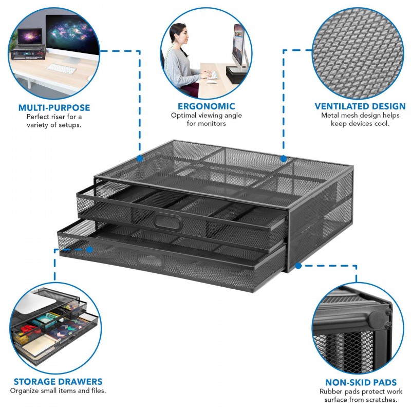 铁艺办公桌面收纳置物架电脑散热增高架显示器抽屉式双层托架批发