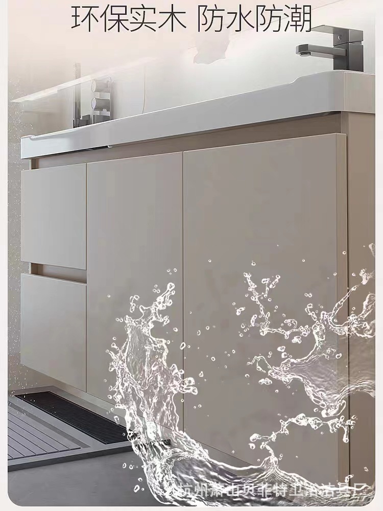 奶油风陶瓷一体盆带搓浴室柜卫生间洗漱台洗手洗脸盆化妆镜柜组合