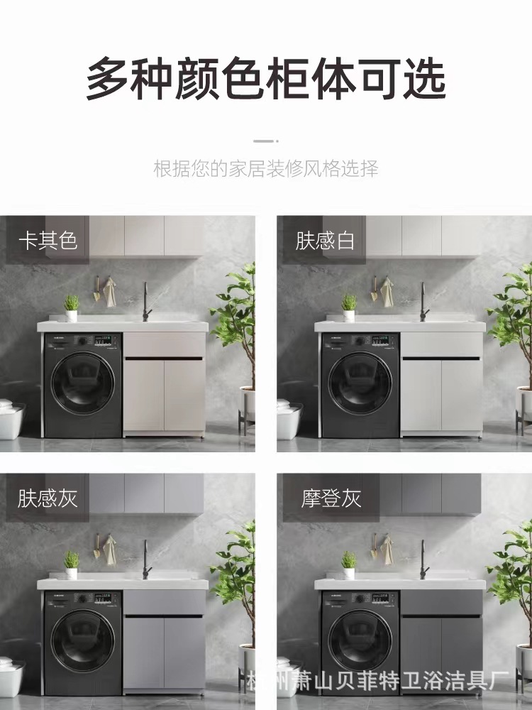 蜂窝铝整柜云岩石洗衣机柜组合滚筒洗衣槽池带搓板伴侣柜定做切角