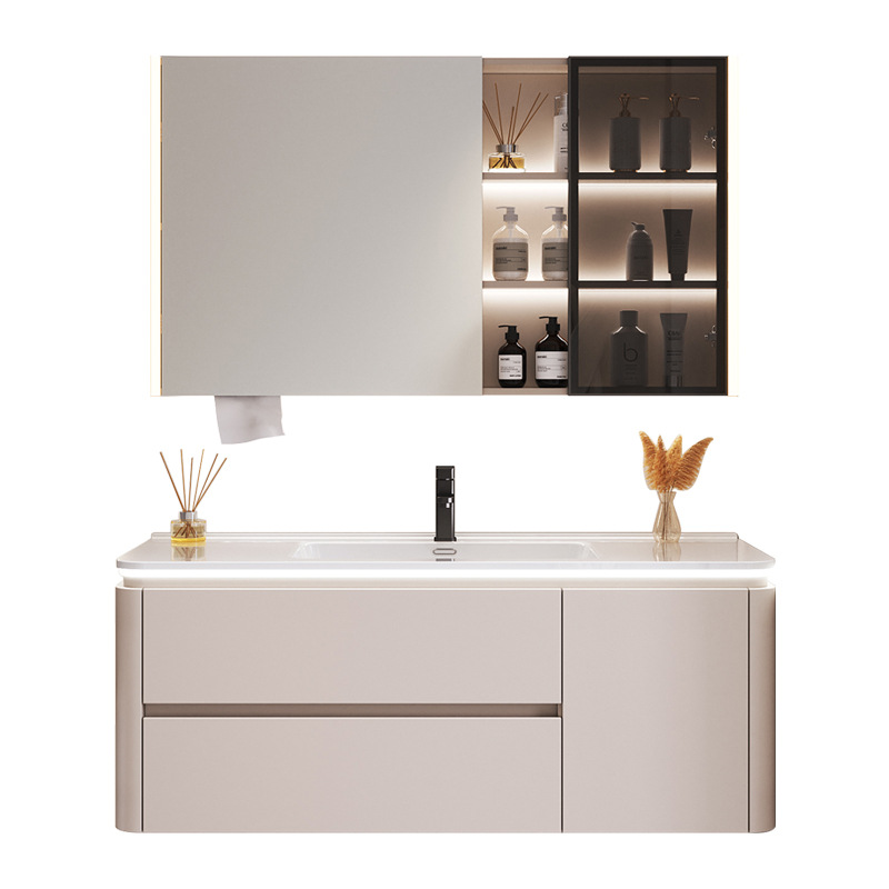奶油风浴室柜组合圆角陶瓷一体盆轻奢智能镜洗手池洗漱台洗脸面盆