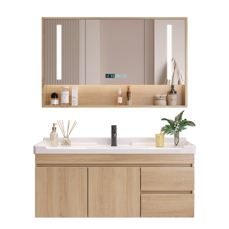 一体陶瓷盆智能浴室柜组合现在轻奢卫生间洗手台洗漱台洗脸盆池柜