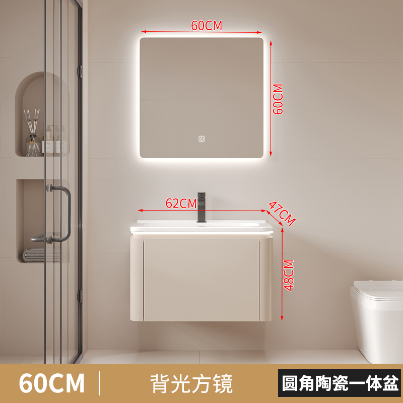 奶油风浴室柜组合网红智能镜陶瓷一体盆洗手池洗漱台洗脸盆卫生间