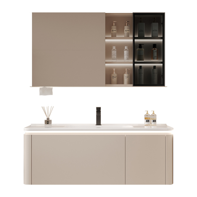 陶瓷一体盆奶油风浴室柜组合网红圆角洗漱台洗手池洗脸盆卫生间