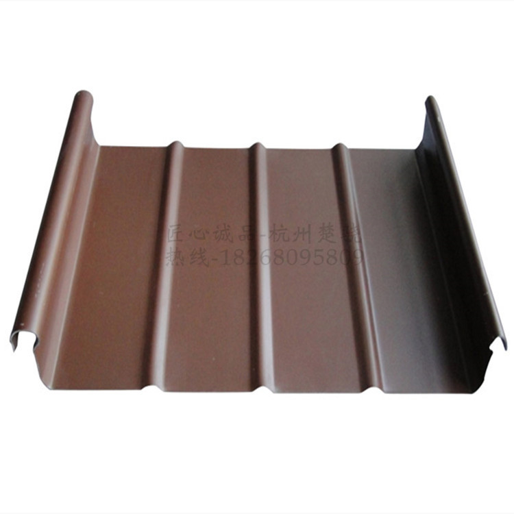 杭州楚骁YX65-430型铝镁锰合金直立锁边屋面板,360°咬合直立固定板型,采用抗老化、不生锈建筑用预辊涂铝合金材质,经分切、辊轧成型,尺寸规格标准、板面整洁挺阔、刚度和韧性适中,可根据订单要求制作成弧形板、大小头板或扇弧板,适用于各种曲面、圆形、球冠等异形金属屋盖。本公司可提供深化设计、排版及安装一站式服务。