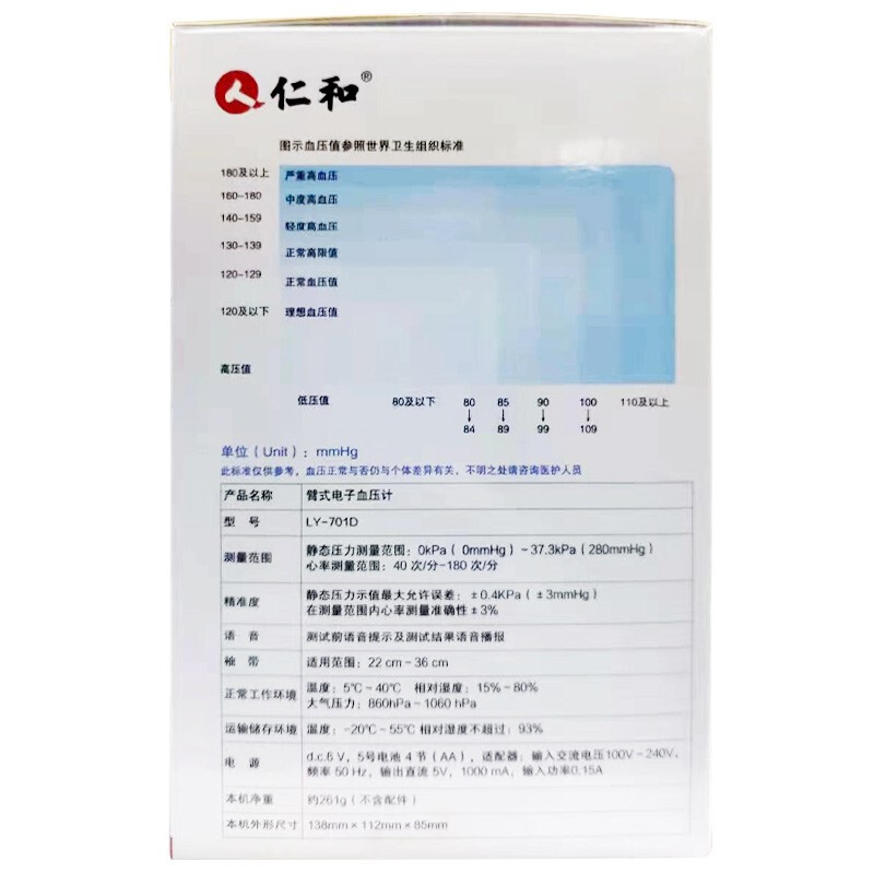 仁和匠心电子血压计LY-701D家用上臂式全自动医用高精度语音测压