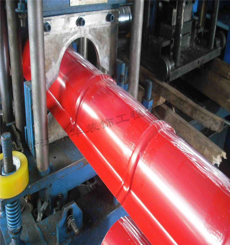 度,提高施工效率,而且施工不受季节影响。该瓦形状,仿造古琉璃瓦,材料选0.3-0.6厚彩色钢板,0.7-0.9铝镁锰合金板,0.7-0.8进口钛锌板。色泽丰富,耐腐蚀性强,集轻质,高强,装饰为一体,以柔和的曲线,明显的阶梯,极富立体感地再现了古瓦效果,每平方米重量仅为5-9公斤,是传统烧结瓦的几十分之一。牢固的链接方式完全能承受屋面荷载;特有的空气间层提高了保温隔热性能;瓦自身故有的防水槽具有良好的防水特点,非常适合轻钢结构,混凝土结构,木结构等坡顶建筑或旧城改造中平改坡工程