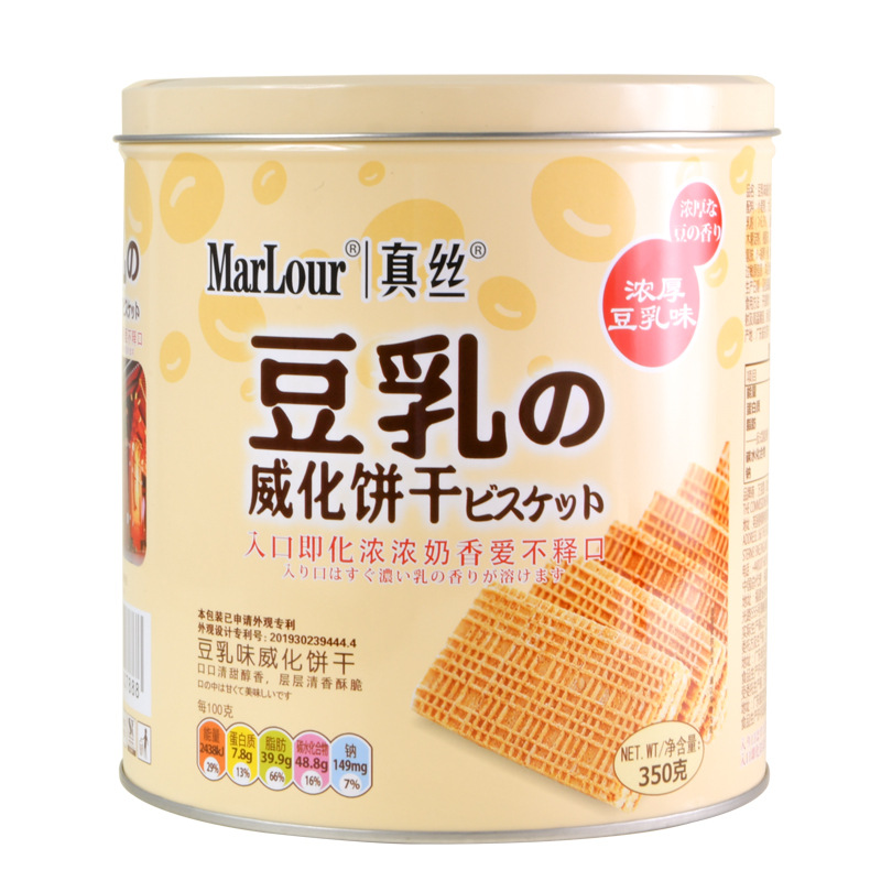 英国MarLour豆乳威化饼干 桶装350g罐装零食茶点小吃零食整箱包邮